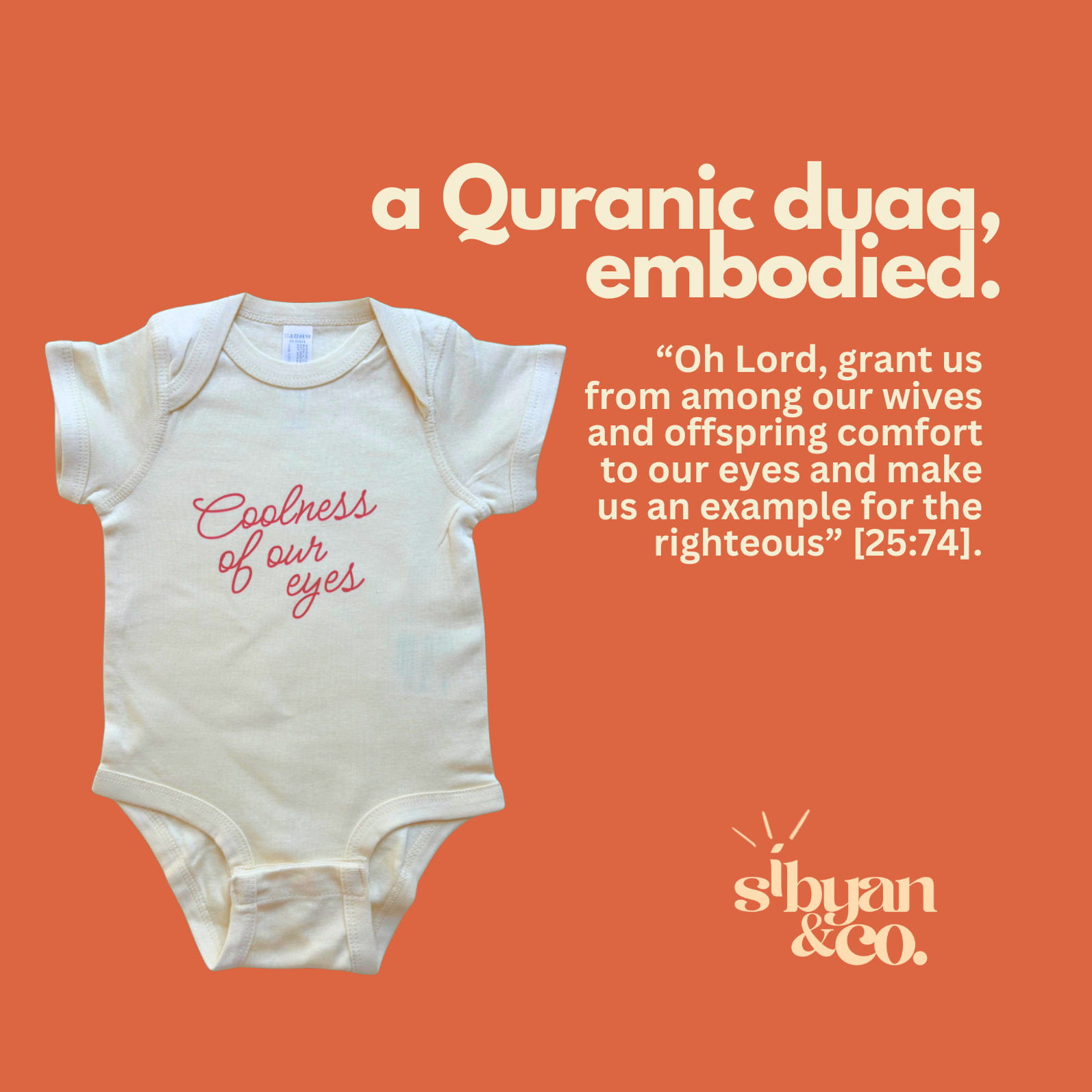 Wrap your bundle of joy in a statement piece this fall. This buttery soft bodysuit is inspired by the verse, “Oh Lord, grant us from among our wives and offspring comfort to our eyes and make us an example for the righteous” [25:74].“
